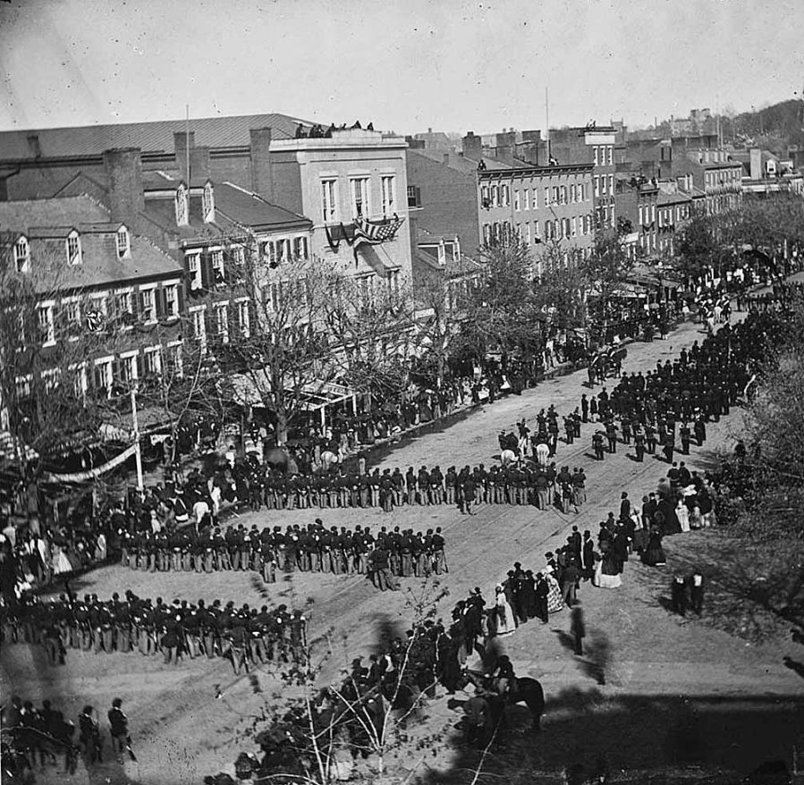 Funeral procession for Abraham Lincoln on April 19, 1865, making its way on Pennsylvania Ave. from the White House to the U.S. Capital. His body was then taken by train to Springfield, Ill. for burial