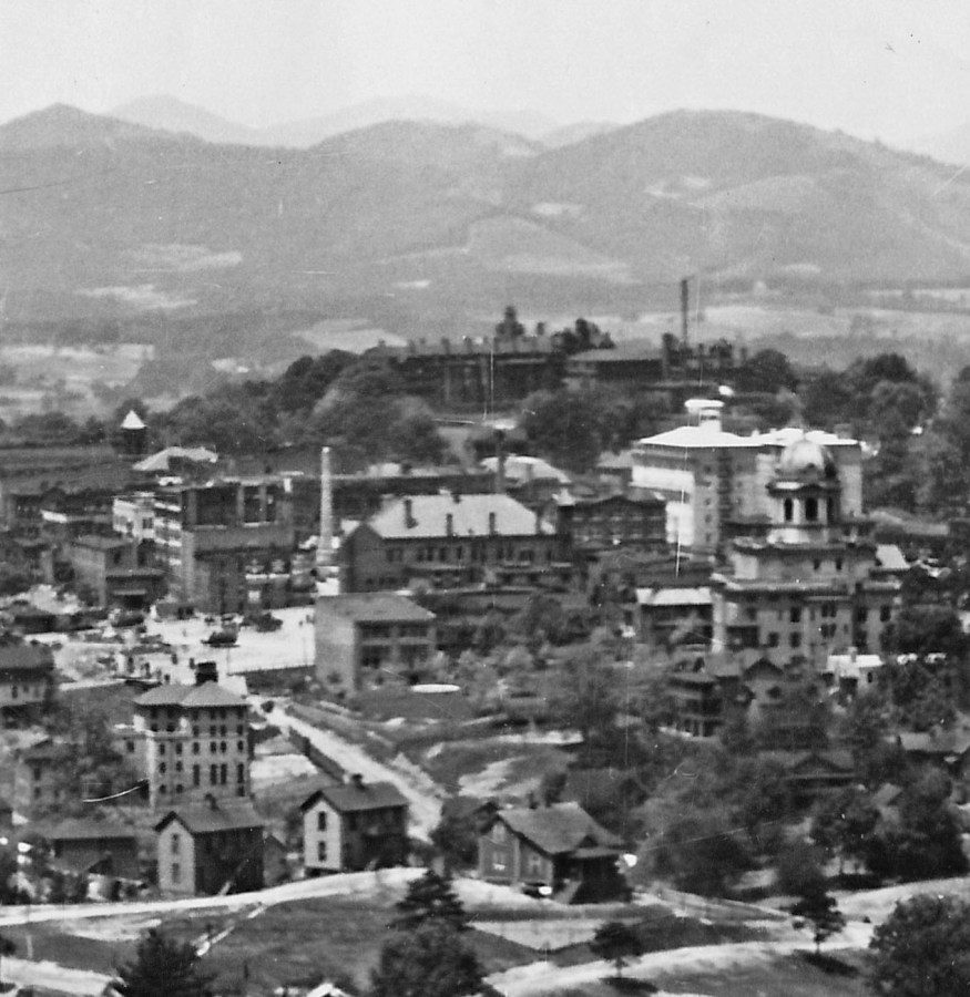 Downtown Asheville, N.C. at the turn of the 19th century. Vance Monument is on the left.