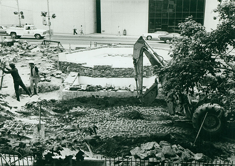 Modern times: the Pritchard Park fountain being built in 1975.