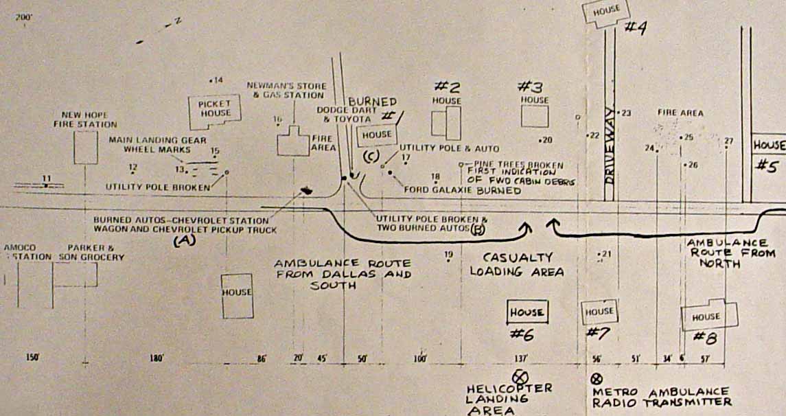 The Crash Site Map for Southern Airways Flight 242. The Burkhalter house is #4. The Clayton house is #7.