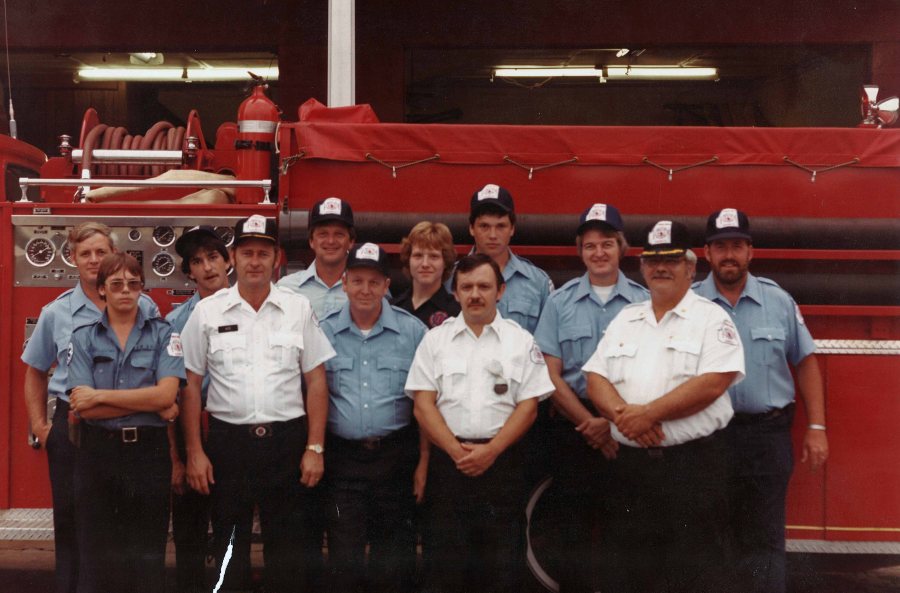 The New Hope VFD ca. 1980’s (L-R) Buzz Lee, Tommy Long, Randy Farr, Donald Hite, Jackie Shipp, David Greenway, Eddie Ray, unknown, unknown, Eddie McCullough, Chief Lavern Farr, Jerry Hicks