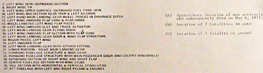 The Crash Site Map for Southern Airways Flight 242. The Burkhalter family home is #4. The John Clayton home is #7. The final resting spot for the aircraft is the fire area designated as #22 through #27. (click map for a larger view)