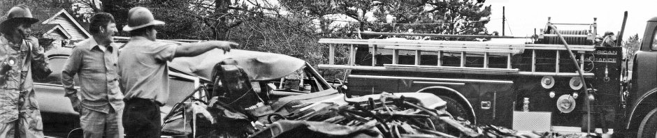 I arrived by car from the west shortly after the survivors had been transported. Only then did I realize the magnitude of the accident. My job then became search and recovery! As I approached Newman’ s Store, I saw a small station wagon completely consumed by fire, and smashed to about 2 feet thick–the remains of several persons were inside. I understand women and children were in the vehicle at the gas pump.