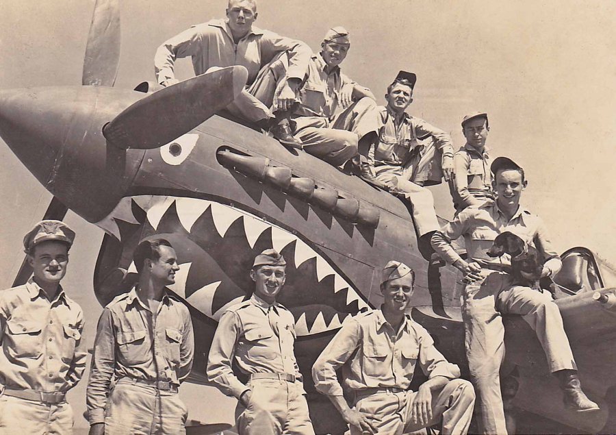 Lt. C. James Crysler (top right) posing with other fighter pilots of the 14th Air Force (Photo ca. 1943)