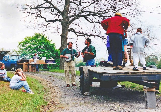 Cliff Davids (guitar) and Stewart Canter (banjo) perform at the Eliada Founder’s Day Celebration in April 2000