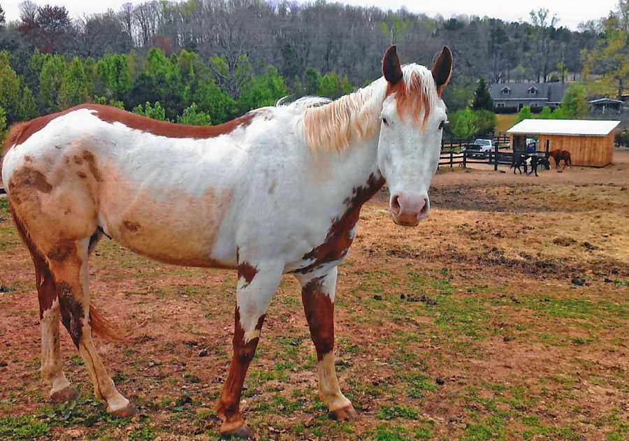 A curious resident at Save the Horses Farm in Cumming, GA