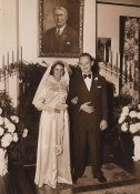 A radiant daughter gets married at Home in 1954 under her Dad’s portrait.
