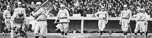 MANHATTAN, NY – OCTOBER 1912: Members of the Boston Red Sox line up for batting practice before one of the World Series games against the New York Giants circa October 1912 at the Polo Grounds in Manhattan, New York. The Sox went on to win the series, defeating the New York Giants. (Photo by FPG/Getty Images)